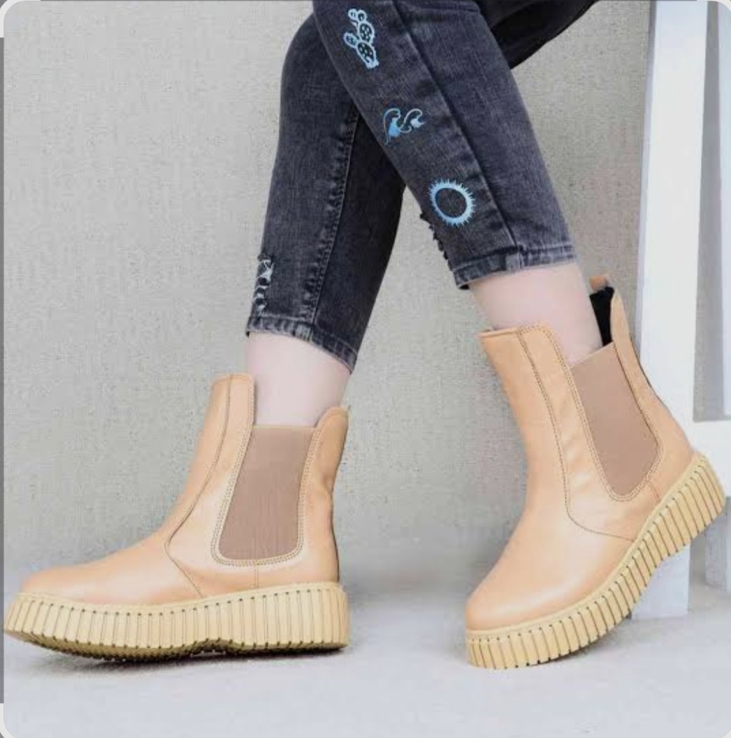 نیم بوت زنانه بغل کش زیر درجه یک رویه چرم مصنوعی درجه یک با قالب استاندارد